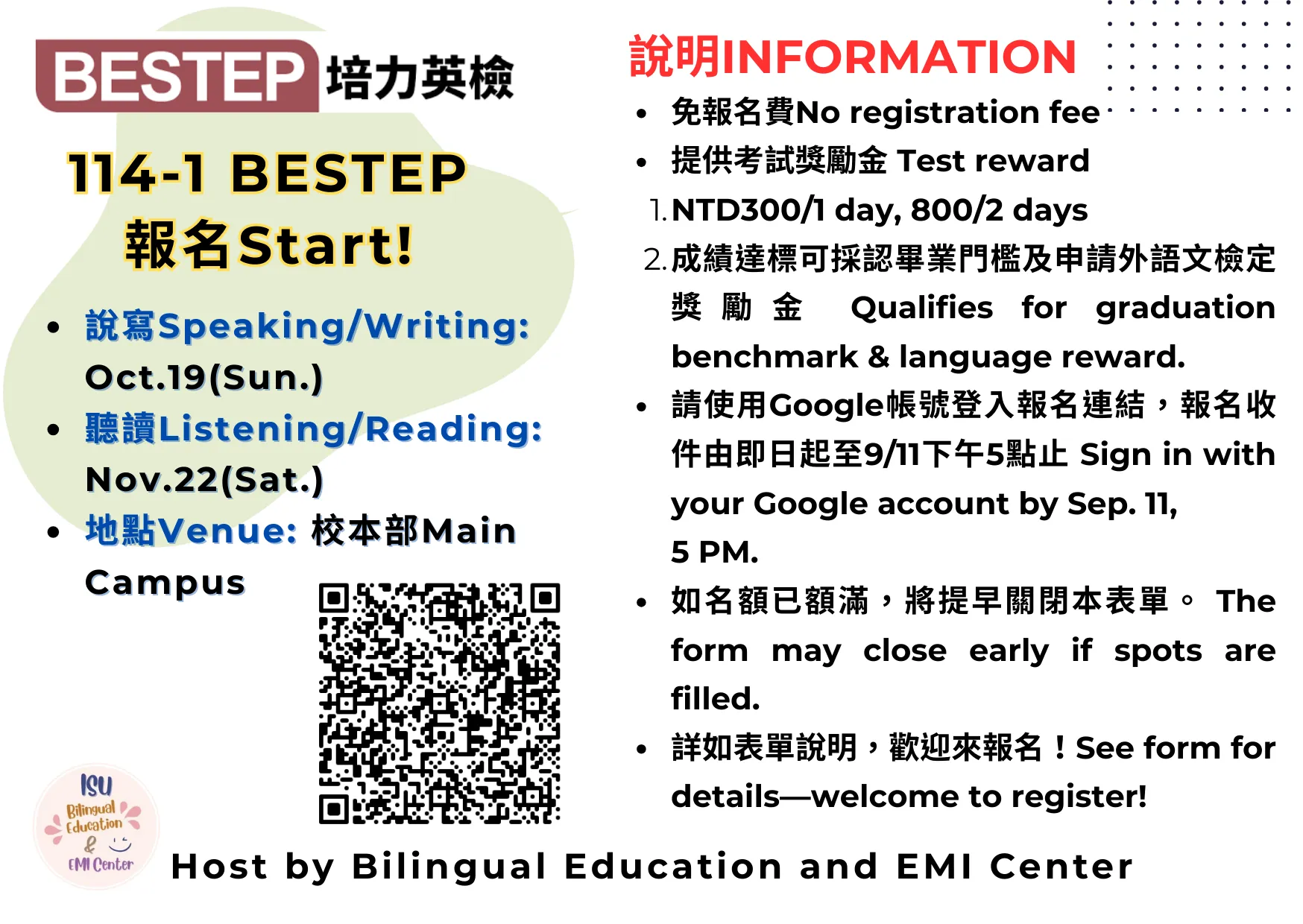 114-1「培力英檢(BESTEP)」免費報名中 Free Registration Now Open!